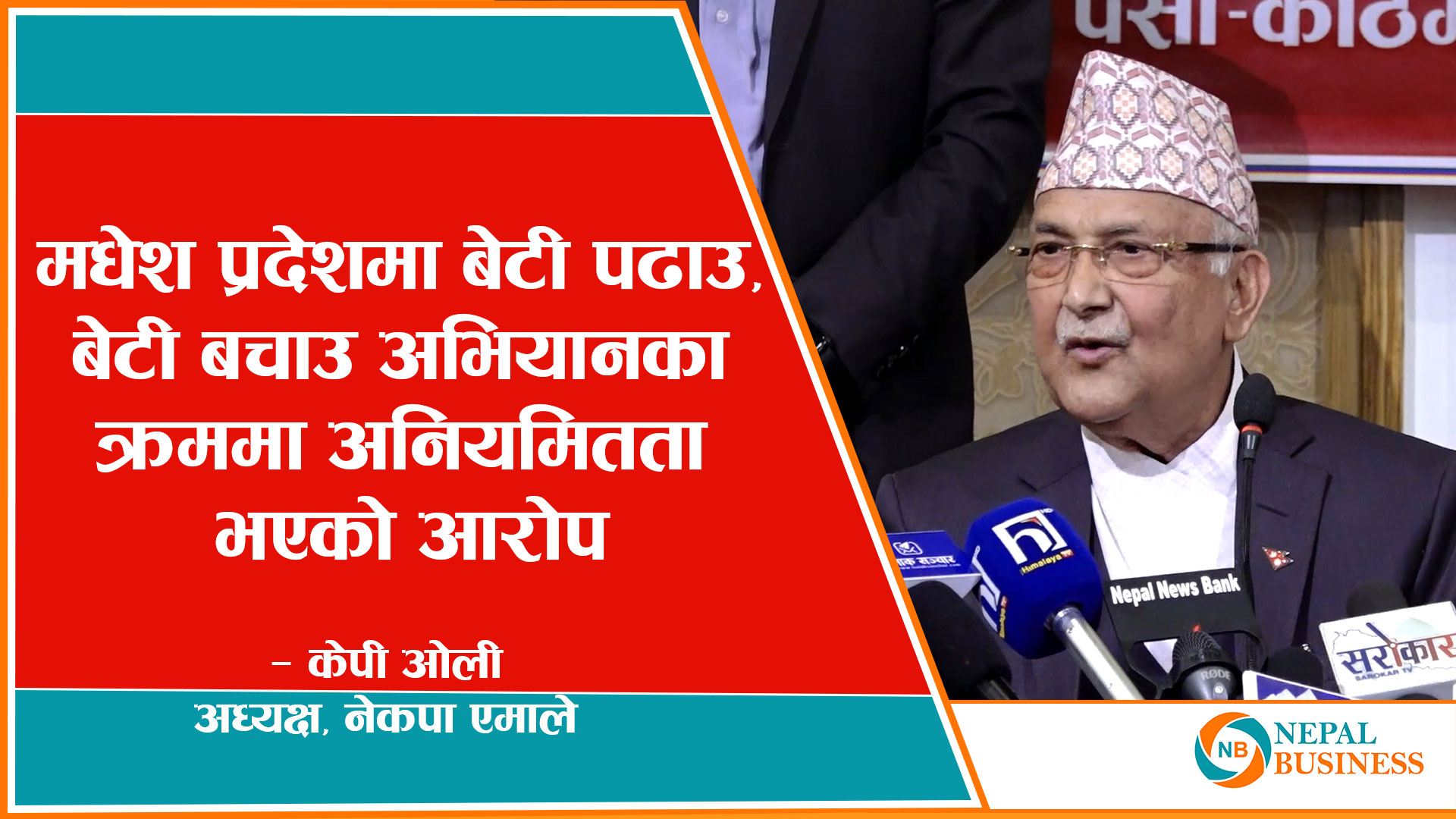 नेकपा (एमाले) का अध्यक्ष केपी शर्मा ओलीले मधेश प्रदेश सरकारको नारा र व्यवहार विलकुल फरक रहेको भन्दै कटाक्ष गरेका छन् । भक्तपुरको रोयल थाई इभेन्ट राधे राधेमा एमाले पर्सा–काठमाडौं सम्पर्क मञ्चले मंगलबार आयोजना गरेको कार्यक्रमलाई सम्बोधन गर्दै ओलीले मधेश प्रदेश सरकारको नारामा ‘बेटी बढाउ, बेटी बचाउ’ रहे पनि व्यवहार साइकल पचाउ रहेको आरोप लगाएका हुन् ।